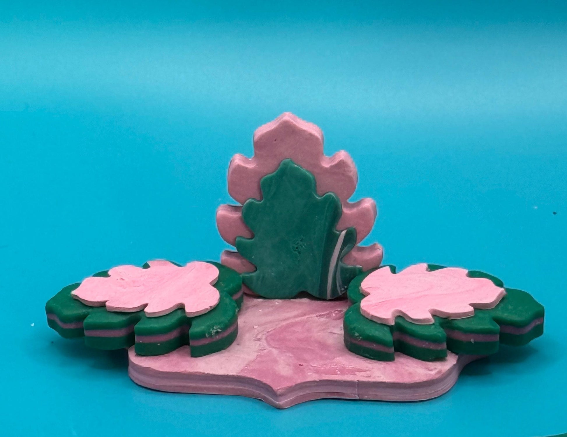 Crafted with love (and a little bit of clay magic), it features a pink base with a green monstera layer stacked on top—like a houseplant that decided to get fancy for dinner. Topped with a double-layered back rest to support your candle tight, this holder doesn’t just sit pretty—it holds its ground. And yes, it comes with a gorgeous handmade candle because we’re all about delivering the full vibe.