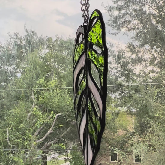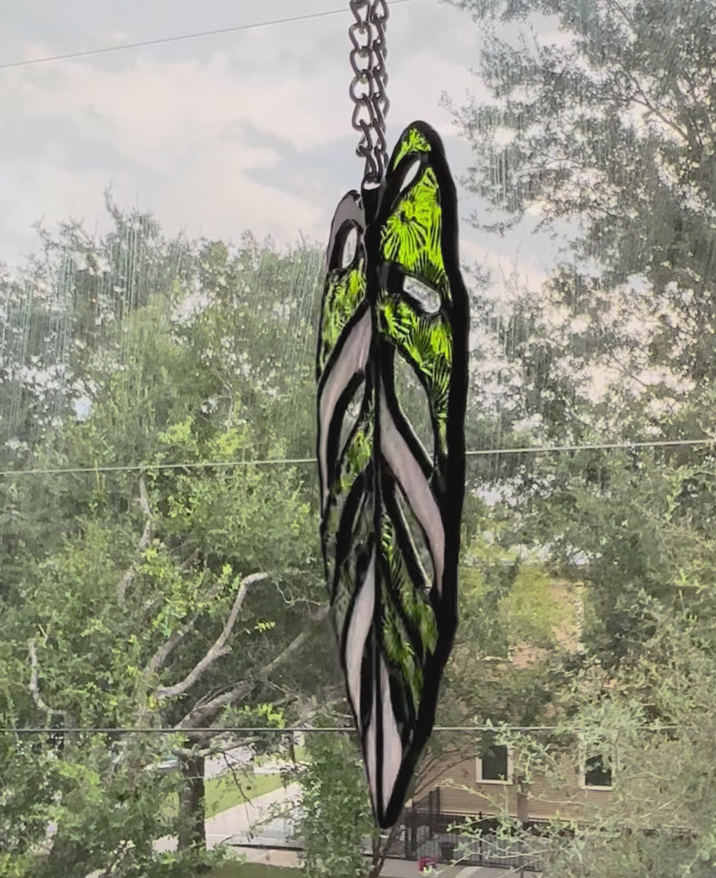 Crafted using the traditional Tiffany technique. Each piece begins as a sheet of glass that’s hand‑selected for its color and character. Every shape is carefully cut, edges are smoothed, and each piece is wrapped in copper foil. The design is then soldered together, finished with patina for depth, and completed with a sturdy metal chain for hanging. This hands‑on process ensures every piece is one‑of‑a‑kind and made to be enjoyed for years to come.