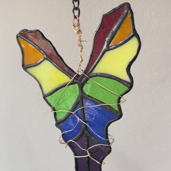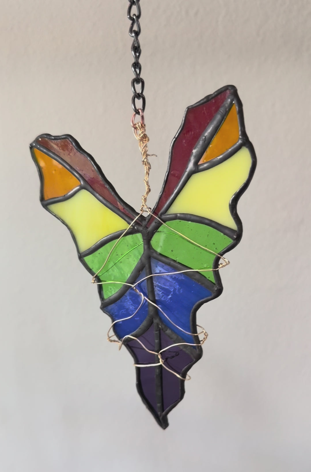 Crafted using the traditional Tiffany technique. Each piece begins as a sheet of glass that’s hand‑selected for its color and character. Every shape is carefully cut, edges are smoothed, and each piece is wrapped in copper foil. The design is then soldered together, finished with patina for depth, and completed with a sturdy metal chain for hanging. This hands‑on process ensures every piece is one‑of‑a‑kind and made to be enjoyed for years to come.